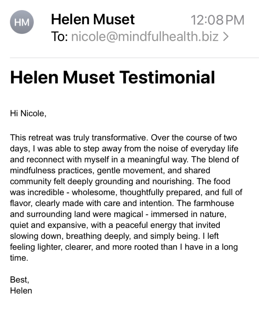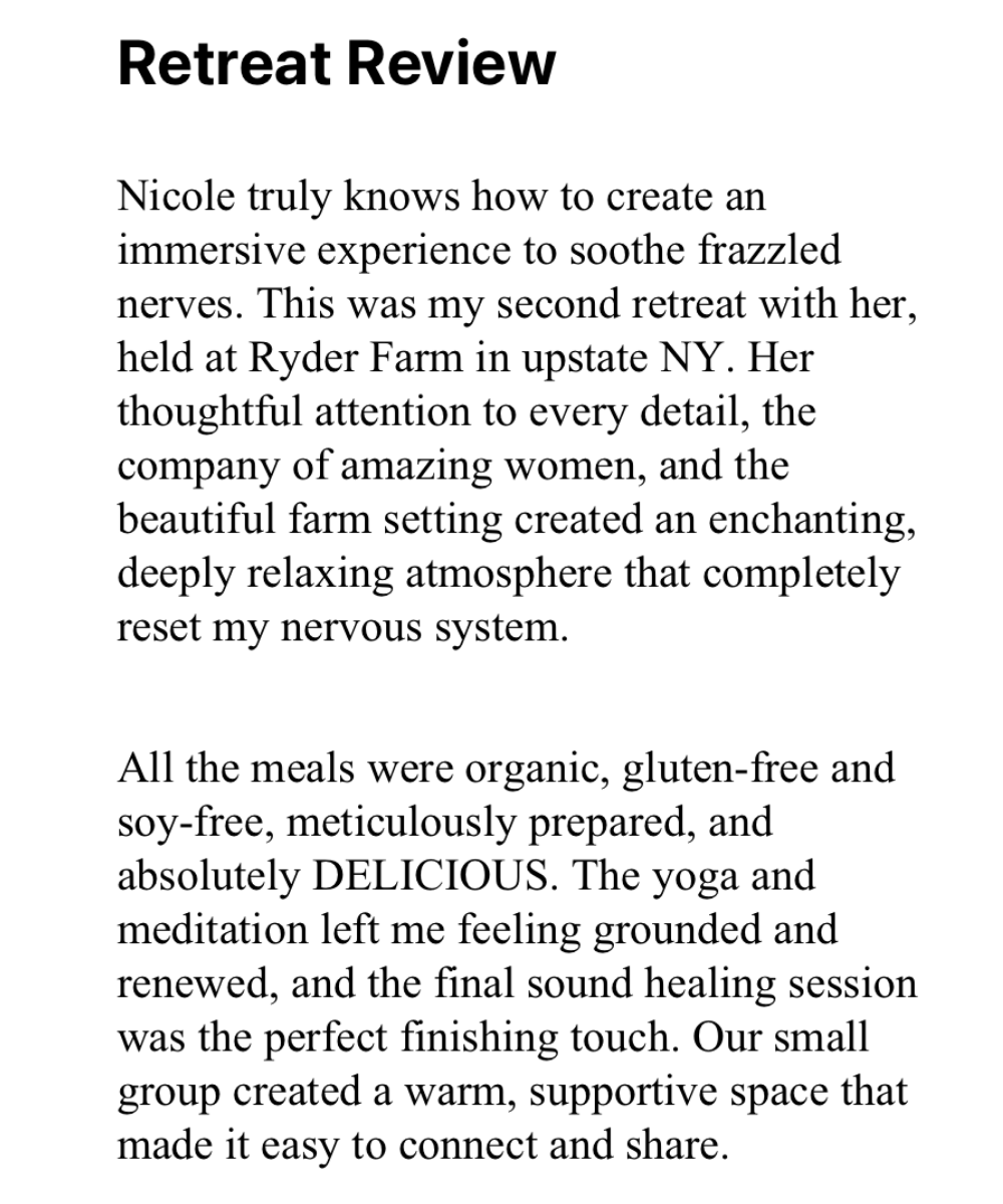 Led by Nicole Glassman, a holistic health expert and founder of Mindful Health, who brings over 12 years of experience creating transformative and heart-centered retreats.